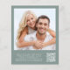 Chic budget-friendly sage green wedding reception invitation featuring "Happily Ever After Party" in a blend of a contemporary white script and bold minimal modern white lettering, and your names in a signature-like script. On the back, upload your photo and input your wedding website address to create a QR code for your guests to scan to RSVP online and obtain additional wedding details. This budget semi-gloss paper is similar in weight to photo paper. A larger 5x7 traditional card stock version is also available (message us for the link).