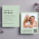 Chic budget-friendly sage green wedding reception invitation with "Happily Ever After Party" in a blend of a contemporary script and minimal modern lettering, your invitation, and your names in a signature-like script. On the back, add your photo and input your wedding website address to create a QR code for your guests to scan to RSVP online and obtain additional wedding details. This budget semi-gloss paper is similar in weight to photo paper. A larger 5x7 traditional card stock version is also available (message us for the link).