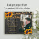 Elegant chic summer or fall wedding stylish BUDGET affordable invitation template on dark brown barn wood featuring beautiful sunflowers bouquets, strings or twinkle lights and a chic faux gold calligraphy script. ++++++++++++++ Easy to personalize with your details and photo! +++++++++++ The invitation is suitable for elegant summer or autumn fall rustic country barn weddings. ++++++++++++++++++++++++++++ PLEASE READ THIS BEFORE PURCHASING! This is a budget affordable card printed on a FLYER. ++++ Please note that BUDGET PAPER IS THIN - You can upgrade to have this card printed on cardstock ++++ ENVELOPES NOT INCLUDED. +++ Double-check all the information and spelling of your text because you will receive exactly what you see - no one else will check anything before printing. ++++ This card is designed for size 4.5" x 5.6". In the case you choose another size of the card and text goes outside page, everything needs to be fixed before adding the product to cart. Please ask Live Design Service for help.