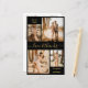 Elegant, modern, minimalist black and gold hand Lettered 4 photo collage personalized wedding thank you personalized affordable low budget THIN card. ***PLEASE NOTE, SCROLL DOWN FOR MORE INFO!*** Stylish wedding thank you card template featuring four (4) photo on the front and one (1) photo on the back side. With the text "Love and thanks" in a cursive hand lettered typography swash-tail font script in gold color on black background. Little heart shape between the names. Personalize your name and thank you message. *** PLEASE NOTE! *** BUDGET PAPER/FLYER IS PAPER THIN. *** UPGRADE THE PAPER FOR A THICKER PAPER. *** Traditional Cardstock with Envelopes: https://www.zazzle.com/love_and_thanks_script_black_gold_collage_wedding_thank_you_card-256443481225826268 https://www.zazzle.com/love_and_thanks_script_black_gold_collage_wedding_thank_you_card-256283855226677317