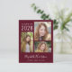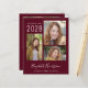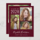 Budget-friendly burgundy red graduation announcement and party invitation with a 3 photo collage, "Graduate" in a stylish white script, and the grad's name, class year and school or university in simple white typography. On the reverse, add an additional picture and your graduation party details.
