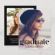 A budget friendly option to announce your graduate's achievements, this stylish graduation announcement features your grad's photo, "Graduate" written in a trendy type typography with unique lines and his or her name, school and class year. On the reverse side, add an additional photo and personalized message in simple white typography on a black background..