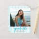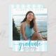 Be proud, rejoice and announce to the world that your favorite grad has reached their milestone with this stunning, simple, modern, personalized budget announcement invite. Sparkly, elegant, faux turquoise blue glitter calligraphy script, gray sans serif typography and a photo of your choice overlay a light turquoise blue and white striped background. Personalize the custom text with your graduate’s name, school name, class year, and graduation date. On the back, add your personal note, next school they’re attending, party information, etc. Guaranteed to add stylish fun to their special occasion!