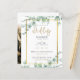 Introducing our stunning new wedding invitations, perfect for the modern couple looking for a touch of elegance and botanical charm. The invitations feature beautiful modern typography and a photo of the engaged couple on the back, adding a personal touch to your special day. The design is beautifully adorned with watercolor eucalyptus leaves, a stunning greenery that makes it suitable for all seasons - whether you're planning a spring, summer, fall, or winter wedding.