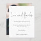 Photo Wedding Love and Thanks Script. A budget friendly SMALLER 4.5” x 5.6” alternative. Available in a SEMI GLOSS 110 lb CARD STOCK or a SATIN FINISH 80 lb THINNER PAPER STOCK. Envelopes are an optional extra. A minimalist typography design with a set stylish handwriting style script for Love and Thanks. On the back replace the sample picture with your own favorite from your day as a keepsake for your guests. Easily personalise the rest of the text with your message and names.