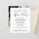 Budget-friendly elopement or small wedding announcement and wedding reception save the date. The front features "Save The Date For Our Happily Ever After Party" in a mix of simple typography and a modern script, and you can personalize your wedding announcement and reception save the date in more detail and your names in a signature-like script. The reverse side features your favorite wedding photo, your first names and wedding and reception dates.