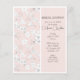 This bridal shower invitation features a background of pink and white with cute birds on it in contrasting colors.