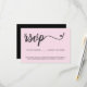 Designed with modern elegance in mind, this RSVP card features a chic black and pink color scheme. The RSVP script is adorned with a stylish embellishment, adding a touch of sophistication to the design.