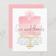 A value for money BUDGET alternative on a smaller size 4.5 x 5.6” semi-gloss 110lbs weight, which is of similar thickness to a postcard (however is not suitable to use as a postcard.). PLEASE NOTE there is ONE per sheet. Budget Pink Cake Script 50th Birthday Thank You. The header Love and Thanks is in a set handwritten style with your message of thanks beneath overlaid onto a pretty pale pink cake to the background on a gold stand and a flower on top.. Easily personalise the rest of the text with your details.