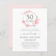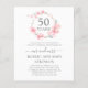 An elegant and pretty cherry blossom wreath surrounds 50 years at the top of this 50th wedding anniversary party invitation. The soft dove gray text complements the pink watercolor floral. The combination of modern calligraphy script and upright text gives it a contemporary vibe.