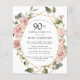 Pretty dusty pink roses create a modern floral border on this 90th birthday party invitation.