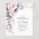 Announce upcoming bridal shower with a modern pink indigo blue watercolor invitation card the bride to be and the guests would love. Featuring beautiful botanical watercolor bloom and modern typography you can easily customize.
