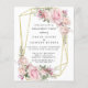 Soft blush pink roses decorate a thin gold geometric frame. Delicate sage green leaves add to the watercolor floral arrangement. The back is soft pastel pink. This pink floral engagement party invitation is part of the Summer Romance collection. It contains many DIY wedding templates that let you easily create a beautiful bridal shower invitation set and party decor.