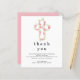 A value for money BUDGET alternative on a smaller size 4.5 x 5.6” semi-gloss 110lbs weight, which is of similar thickness to a postcard (however is not suitable to use as a postcard.). PLEASE NOTE there is ONE invite per sheet. Pink Florals Cross Baptism Thank you. A large cross bordered with pink flowers is at the top half. The header is large in stylish lowercase with the details beneath. Easily personalise the text to your own details.