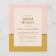 Celebrate a special bridal shower in style with this elegant invitation. Featuring a soft color palette of blush pink and warm gold, this design combines modern minimalism with a sophisticated touch. Printed on a budget-friendly paper option, this invitation is perfect for a chic event that doesn’t compromise on quality. Personalize it with the bride-to-be's details to create a memorable first impression for guests. Ideal for stylish, contemporary bridal showers.