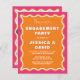 Budget Retro Squiggle Wavy Pink Orange Photo Engagement Party Invitation