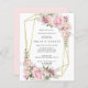 Soft blush pink roses decorate a thin gold geometric frame. Delicate sage green leaves add to the watercolor floral arrangement. A pastel pink sweeps across the back. This pink floral wedding brunch invitation is part of the Summer Romance collection. It contains many DIY wedding templates that let you easily create a beautiful wedding brunch invitation set and party decor.