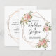Beautiful design at a budget price! Pretty blush pink roses with greenery surround a stylish gold foil geometric frame makes this a lovely wedding invitation. See also our coordinating items.