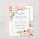 Pink roses and bright white hydrangea flowers are nestled in soft green leaves to create elegant floral arrangements that decorate a sparkling gold frame that surrounds your wedding details. The back is blush pink with a simple coordinating floral bouquet. This item is party of the Blush Pink and White Floral Wedding Collection.