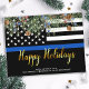 Send Merry Christmas greetings to friends, family, fellow law enforcement departments and your community with this unique Thin Blue Line Police Merry Christmas Card - American Flag in police flag colors, modern black and blue with holly leaves and berries and elegant gold script. Personalize with your message and family name or police department . These police Christmas cards are perfect for police and law enforcement families as well as police departments. COPYRIGHT © 2020 Judy Burrows, Black Dog Art - All Rights Reserved. Budget Police Department Christmas Happy Holidays Postcard