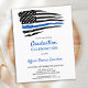 Thin Blue Line Police Graduation Invitations or Police Retirement Party Invitations. Celebrate years of dedicated service, or celebrate your new police academy graduate, and invite friends and family to your law enforcement party with this Thin Blue Line Flag Police Retirement Invitation and Police academy graduation invitations - USA American flag design in Police Flag colors, distressed design. This police academy graduation invitation is also perfect for police retirement party invitations, change venue in personalization. These budget retirement invitation postcards need to be mailed as oversized postcards so may incur standard postage fees but they don't need an envelope or a return address label. See our collection for matching police retirement gifts, police graduation gifts,party favors, and supplies. COPYRIGHT © 2021 Judy Burrows, Black Dog Art - All Rights Reserved. Police Graduation Thin Blue Line American Flag Announcement Postcard