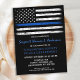 Thin Blue Line Police Retirement Invitations or Police Graduation Party Invitations. Celebrate years of dedicated service, or celebrate your new police academy graduate, and invite friends and family to your law enforcement party with this rustic wood Thin Blue Line Flag Police Retirement Invitation and Police academy graduation invitations - USA American flag design in Police Flag colors, distressed design.This police officer retirement invitation is also perfect for police academy graduation invitations, change venue in personalization. These budget police retirement invitation cards are an alternative to free police retirement invitations . See our collection for matching police retirement gifts, police graduation gifts,party favors, and supplies. COPYRIGHT © 2021 Judy Burrows, Black Dog Art - All Rights Reserved. Budget Thin Blue Line Police Officer Retirement