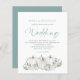 A value for money BUDGET alternative on a smaller size 4.5 x 5.6” semi-gloss 110lbs weight, which is of similar thickness to a postcard (however is not suitable to use as a postcard.). PLEASE NOTE there is ONE per sheet. Budget Pumpkins Teal Foliage Wedding Invitation. Wedding is in a stylish set script and easily personalise the rest of the text. Three white pumpkins with teal blue foliage and white florals are at the bottom for an autumnal feel.