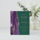 The left-hand edge features a purple watercolor agate border trimmed with gold faux glitter. The customizable text combines gold-colored handwriting, copperplate and italic fonts on an emerald green background. The purple and gold agate design is repeated on the back of the card.
