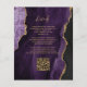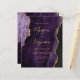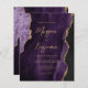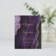 This elegant wedding invitation features a background image of purple watercolor agate trimmed with faux gold glitter. The customizable text combines gold-colored modern handwriting, copperplate and italic fonts. The reverse side provides space for wedding details on a matching purple agate background, along with a QR code guests can scan to visit your website and RSVP, which saves the cost of printing and mailing separate RSVP cards.