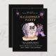 This Budget Evil Scary invitation to a Halloween party with a purple funny bat, a tombstone and purple spiders on a black background . On the reverse side there is also a bat with a tombstone and forest branches in orange and purple tones. Personalize it and enjoy it.