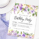 Honor a special woman with this elegant and feminine birthday party invitation. The birthday celebration details are surrounded top and bottom purple floral borders. The floral elements are nestled in deep green leaves. While it is a traditional design, the open and airy botanical foliage and text give it a contemporary vibe. This item is part of the Rustic Purple Floral Botanical collection.