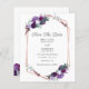 Save the Date Purple Floral geometric frame for your special day announcement budget card. This is part of the purple wedding and bridal shower collection with this design if you're one that loves to match your invitations, party supplies and gift accessories.