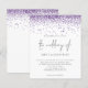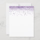 Elegant Purple Glitter Confetti Script Wedding Invitation. A budget price SMALLER 4.5” x 5.6” alternative. Available in a SEMI GLOSS 110 lb CARD STOCK which is the default option (recommended for invitations), OR a SATIN FINISH 80 lb THINNER PAPER STOCK (ideal for enclosures). Envelopes are an optional extra and are slightly larger than the card size. A stylish set typography in black for the main heading the Wedding Of complementing the rest of the text which you can easily personalise. A purple faux confetti style glitter border runs across the top on each side.