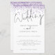 Modern Purple Glitter Confetti Wedding Invite. A LARGER size 5.5” x 8.5” at a budget price, on a SEMI GLOSS 110 lb CARD STOCK, great for invitations, at roughly the same thickness as a postcard, or an elegant 110 lb LINEN stock – for a luxury, slightly thinner feel at great value. PLEASE NOTE THE OPTIONAL ENVELOPES ARE A LITTLE BIGGER IN SIZE AT 6.75” x 9” approx. This budget size alternative is also available in other paper choices. The FELT 100 lbs paper is buff colored, NOT white, so adds a rustic touch. The MATTE 80lbs paper stock is bright white, for crisp printing, great for your menus and programs, whilst the SATIN 80lbs paper is thin and light, ideal for enclosures. Wedding is in set stylish script across the top and elegant typography below with your details. A purple faux glitter border runs across the top. Easily personalise the rest of the text to your own details. You can also change the text and background colors via the customise further option if you wish.