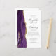 The left-hand edge of this elegant modern wedding invitation features a purple watercolor agate border trimmed with faux gold glitter. The customizable text combines handwriting, copperplate and italic fonts in charcoal gray on a white background. Add additional details on the back, along with a QR code to help your guests visit your wedding website.