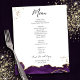 Purple and Gold Glitter Marble Wedding Menu. Faux gold foil stone striations. Script font highlights with easy to read serif name font. Easy to adjust for your own wedding needs. Make your own menu, use your own text to create an elegant yet cheap and affordable event menu. Easy to personalize. Custom menu paper sheets.