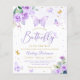 Budget purple gold a little butterfly is on the way floral baby shower invitation.