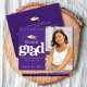Announce to the world that your favorite grad has reached their milestone with this stunning, simple, modern, personalized budget announcement invite. Bold, graphic, white typography and faux gold foil cap icon overlay a purple background. On the right hand side, add a photo of your choice. Personalize the custom text with your graduate’s name, school name, date, and class year. On the back, add your personal note, next school they’re attending, party information, etc. Guaranteed to add stylish fun to their special occasion!