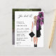 Budget Grad Girl with Black and Purple Balloons Custom Year Modern Minimalist Photo She Did It Graduation Invitation