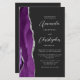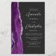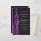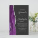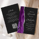 The left-hand edge of this elegant modern wedding invitation features a purple watercolor agate border trimmed with faux silver glitter. The customizable text combines silver gray script and sans serif fonts on an off-black background. The reverse side provides space for wedding details on a solid off-black background, along with a QR code guests can scan to visit your website and RSVP, which saves the cost of printing and mailing separate RSVP cards.