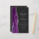 The left-hand edge of this elegant modern wedding invitation features a purple watercolor agate border trimmed with faux silver glitter. The customizable text combines handwriting, copperplate and italic fonts in silver gray on an off-black background. Add additional details on the back, along with a QR code to help your guests visit your wedding website.