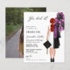Budget Grad Girl with Black and Purple Balloons Custom Year Modern Minimalist Photo She Did It Graduation Invitation