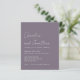 Budget Minimalist Dark Dusty Purple Typewriter and Script Typography Wedding Invitation with RSVP website details.