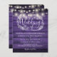 Featuring pretty string lights and a hand-drawn floral garland, this elegant budget rustic wood wedding invitation can be personalized with your information in chic lettering on a purple wood panels background. Designed by Thisisnotme©