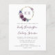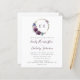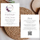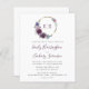 This wedding design features the bride and groom's monogram initials in dark purple framed by a watercolor wreath of purple flowers on a gold faux foil circle. Personalize the text with the couple's names in elegant dark purple handwriting script and the wedding details in charcoal gray. The reverse side provides space for wedding details on a solid white background, along with a QR code guests can scan to visit your website and RSVP, which saves the cost of printing and mailing separate RSVP cards.