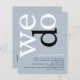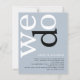 A value for money BUDGET alternative on a smaller size 4.5 x 5.6” semi-gloss 110lbs weight, which is of similar thickness to a postcard (however is not suitable to use as a postcard.). PLEASE NOTE there is ONE invite per sheet. BUDGET Simple QR code Dusty Blue Text Wedding Invite. Add your QR code to your wedding website on the back so your guests can RSVP and see all the details online without the need for separate enclosures. A modern typographical design with We Do in large typography in white with the ”d” in black, rotated and to the left hand side on a background of light dusty blue. Background and text colors can be changed if you wish via Customize further.