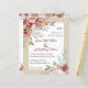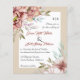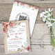 BUDGET terracotta watercolor flowers floral beige fall wedding invitation with QR code to RSVP. It features bouquets of flowers in terracotta brown tones on the corners while your text is placed in a white frame with a beige border. The back includes floral garlands on the upper and bottom parts and the QR code.