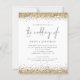 A value for money BUDGET alternative on a smaller size 4.5 x 5.6” semi-gloss 110lbs weight, which is of similar thickness to a postcard (however is not suitable to use as a postcard.). PLEASE NOTE there is ONE invite per sheet. Budget QR Code Gold Glitter Wedding. Add your QR code to your wedding website on the back makes this a convenient option for your guests to RSVP and see all the details without the need for separate RSVP and details cards. An elegant set script for the main heading the Wedding Of complementing the rest of the text which you can easily personalise, with gold faux glitter confetti borders at the top and bottom and also on the back.