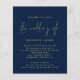 PLEASE NOTE There are two paper options to choose from for this size (4.5 x 5.6”) in the Budget range. For this product, I would recommend the semi-gloss which is a 110 gsm card stock, similar in thickness to a postcard. The Satin option is a much thinner paper 80gsm. The default is set to semi-gloss. PLEASE NOTE there is ONE per sheet. Budget Simple Qr Code Gold Navy Blue Wedding Invitaion. Add your QR code to your wedding website on the back so your guests can RSVP and see all the details online without the need for separate enclosures. Your QR code will automatically be generated when you change the sample url to your own. An informal set typography in gold for the main heading the Wedding Of complementing the rest of the text which you can easily personalise.