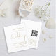 A value for money BUDGET alternative on a smaller size 4.5 x 5.6” semi-gloss 110lbs weight, which is of similar thickness to a postcard (however is not suitable to use as a postcard.). PLEASE NOTE there is ONE invite per sheet. Budget QR code Gold Typography Wedding Invitation. Add your QR code to your wedding website on the back makes this a convenient option for your guests to RSVP and see all the details without the need for separate RSVP and details cards. Minimalist typographical style, with a set handwritten script for Wedding and the rest of the text you can easily personalize.